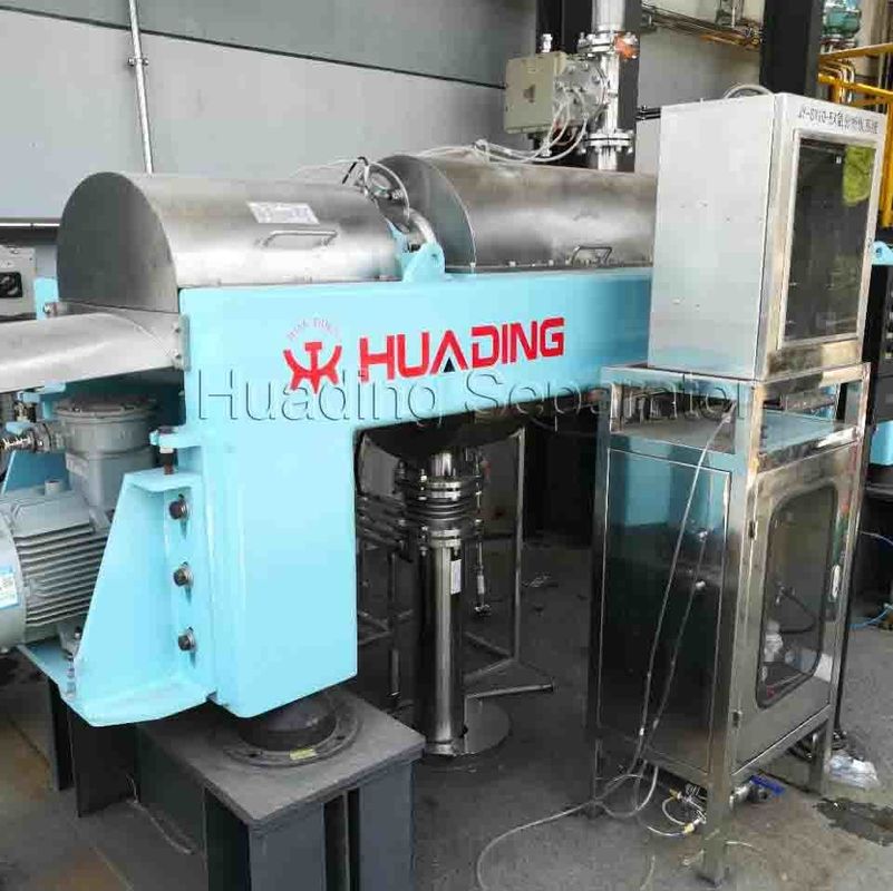 Inclui uma bacia, um transporte de parafuso arranjado na bacia, um diferencial e uma tubulação de alimentação arranjados em ambas as extremidades da bacia e usou-se conjuntamente com o transporte de parafuso, e é ficado situado nos assentos de carregamento em ambas as extremidades da bacia. Um anel do carbono é fornecido, um porto de enchimento do nitrogênio do anel do carbono é fornecido no anel do carbono, um porto de enchimento do nitrogênio da tampa é fornecido em ambas as extremidades e na parte inferior da tampa fora da bacia, e um porto do relevo de pressão da tampa é fornecido na parte superior da tampa. A quantidade de nitrogênio carregada no modelo de serviço público durante a separação é reduzida extremamente comparada com os centrifugadores ordinários do filtro, e o contato entre a alimentação e o ar é isolado bem, e o efeito à prova de explosões é conseguido.